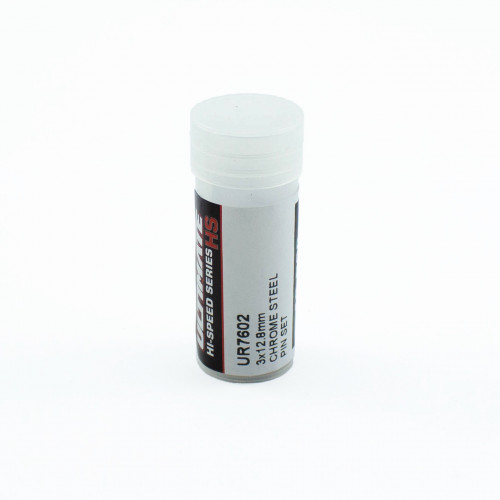 Éste es el kit de Pins de Acero Cromado de 3x12.8mm de Ultimate Racing. Contiene 10 unidades