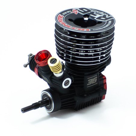 Fabricado por la prestigiosa O.S. Engines, el R36 V2, igual que la versión anterior toma como base el Speed B21 de carrera cuadrada con nuevos timmings de admisión y escape, tapa trasera rediseñada y un cárter optimizado.