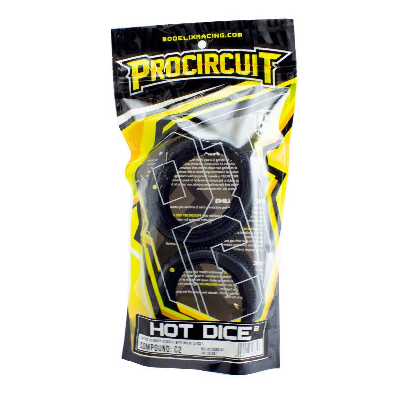 Éste es el par de rueda con insert HOT DICE V2 de PROCIRCUIT. Como su predecesora, esta rueda presenta unos tacos de tamaño mediano en forma de dados con un espaciado entre tacos equilibrado para conseguir una máxima tracción hacia adelante. Las dos filas exteriores de tacos están pensadas para conseguir un mejor y más rápido paso por curva, con una sensación muy estable, fácil de conducir y un agarre lateral predecible. Se ha cambiado el diseño de los tacos centrales para incrementar la tracción y la durabilidad de la rueda.