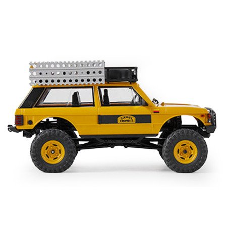 COCHE LAND ROVER 1/24 RANGE ROVER FIRST GENERATION RTR AMARILLO FMS (FCX24M) El FMS 1/24 FCX24M Range Rover First Generation RTR (Ready-To-Run), presentado en el distintivo esquema de color Camel Trophy, es una réplica a micro-escala del icónico todoterreno de lujo clásico. Construido sobre el avanzado chasis FCX24M, este modelo ofrece una combinación única de detalles de coleccionista (carrocería rígida ABS, interior simulado) y rendimiento de crawler técnico gracias a la transmisión de dos velocidades controlable remotamente y la suspensión de alta calidad. Viene completo y listo para la aventura.